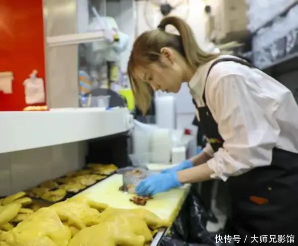 她于香港九龙闹市地带的一家经营海南鸡饭的餐厅打工,只见她身穿服务员的服装,头发随意扎起,动作勤快地收拾着桌面上的餐具。